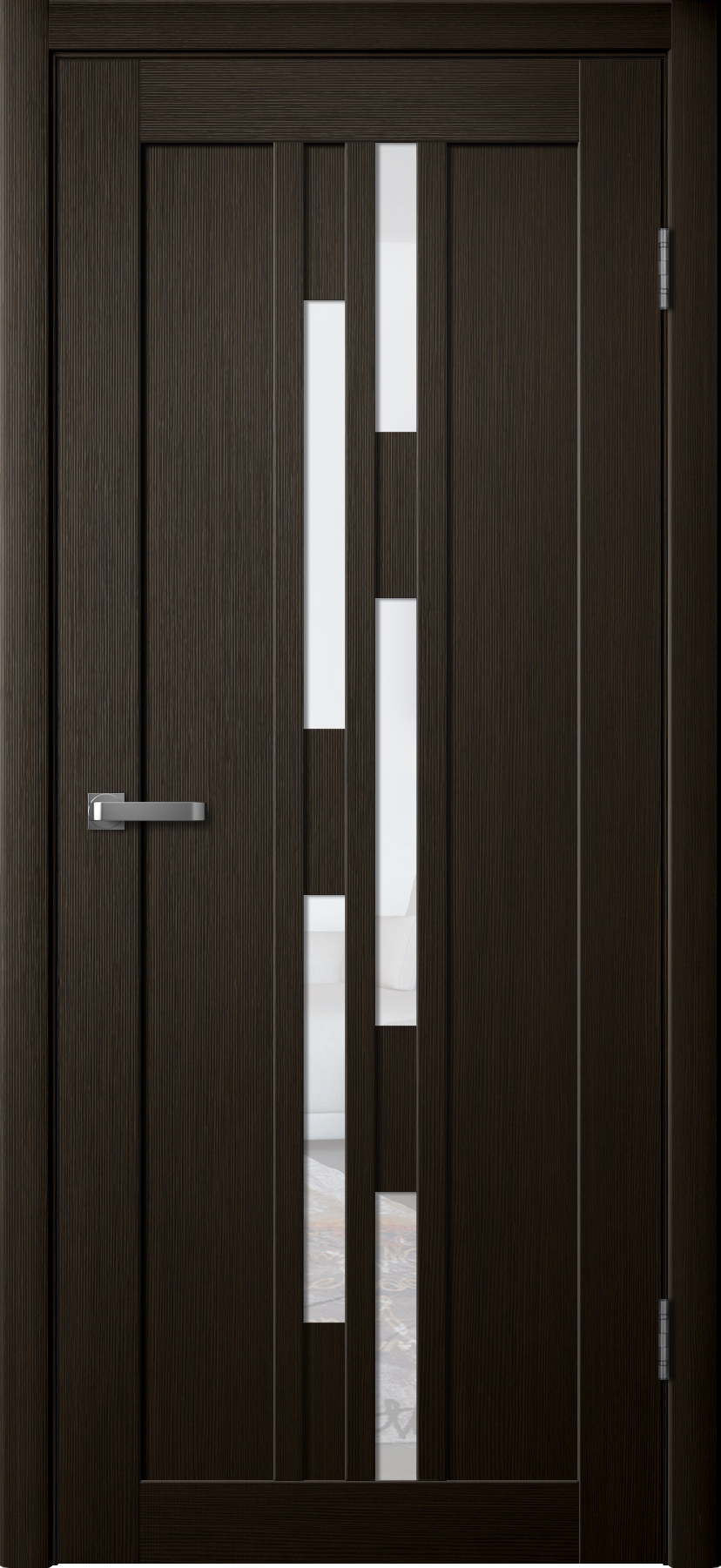 Для покрытия царговых дверей данной коллекции используется экошпон — это декоративное многослойное покрытие с эффектом натурального шпона.