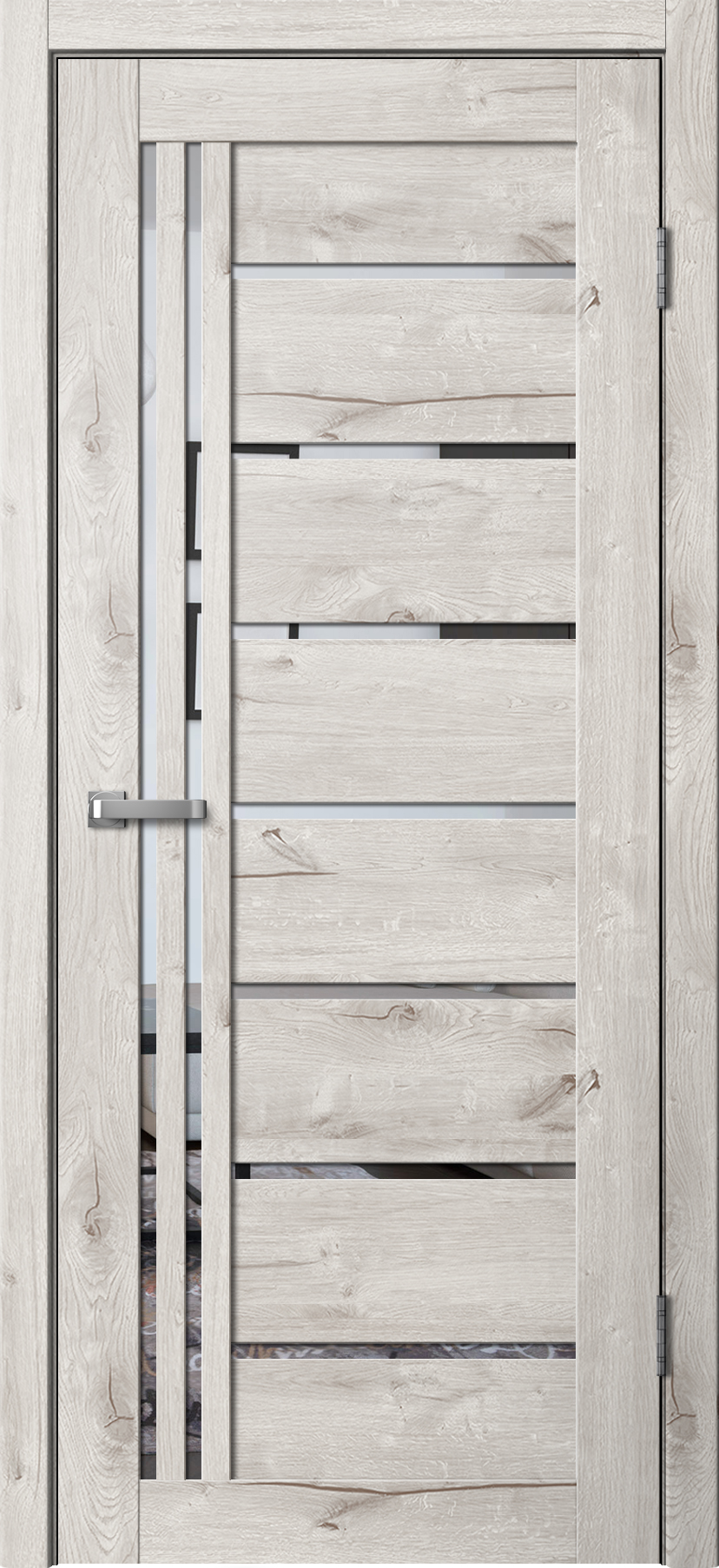 Для покрытия царговых дверей данной коллекции используется экошпон — это декоративное многослойное покрытие с эффектом натурального шпона.