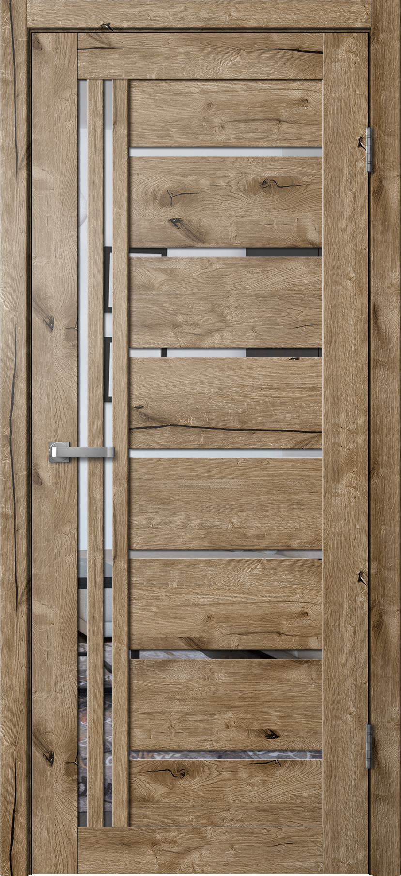 Для покрытия царговых дверей данной коллекции используется экошпон — это декоративное многослойное покрытие с эффектом натурального шпона.