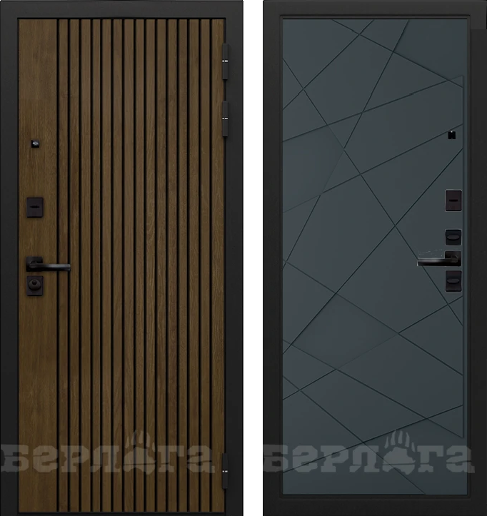 Металлические сейф-двери Берлога серии ТРИНИТИ УП имеют Полотно с НАРУЖНОЙ МДФ панелью, с РЕБРАМИ жесткости и ЗАМКОВЫМ КАРМАНОМ толщиной 105 мм. с ребрами жесткости и замковым карманом; ЗАКРЫТЫЙ усиленный УТЕПЛЕННЫЙ короб толщиной 115 мм. Утеплитель минеральный материал KNAUF (негорюч.,экологич.). Этот материал хороший тепло- и звукоизолятор. Плотное прилегание полотна к коробу обеспечивается тремя контурами резиновых уплотнителей. Это позволяет сделать вашу квартиру уютной и теплой.